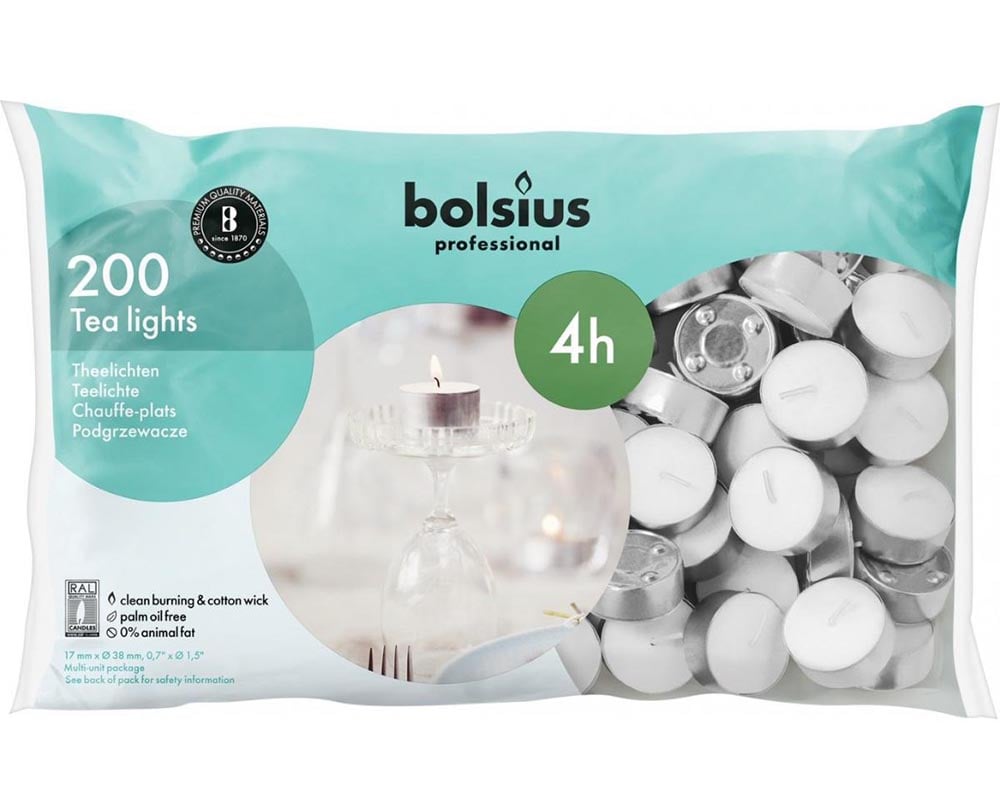Simple and elegant, Bolsius Professional 4 hour T-Lights make it easy to get the perfect look. Bolsius Professional T-Lights are made with a premium wax blend and burn with a bright, clear flame. They are perfect for creating a welcoming atmosphere, on the dining table or any public area