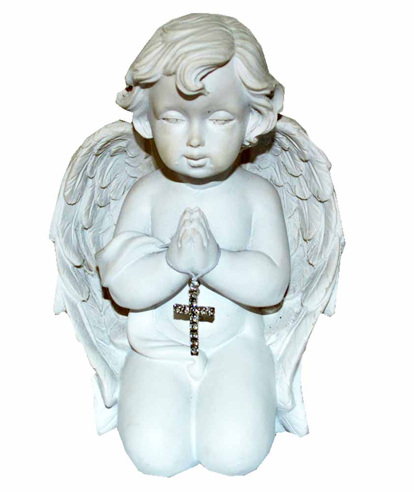 Cherub Kneeling With Cross White 10.5X8X13.5cm