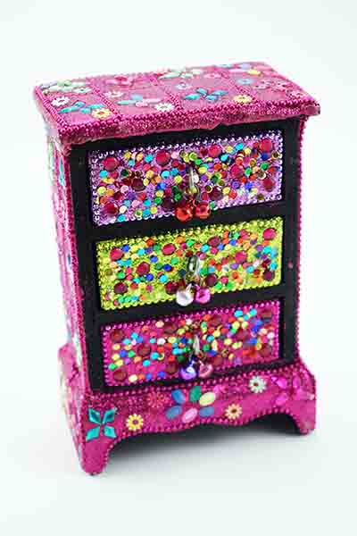 Chest With 3 Drawers Purple Glitter With Multi Colour Sequins