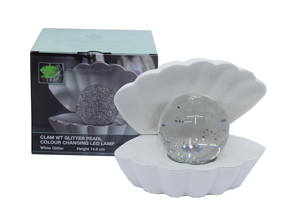 Clam With Colour Changing White Glitter Pearl White