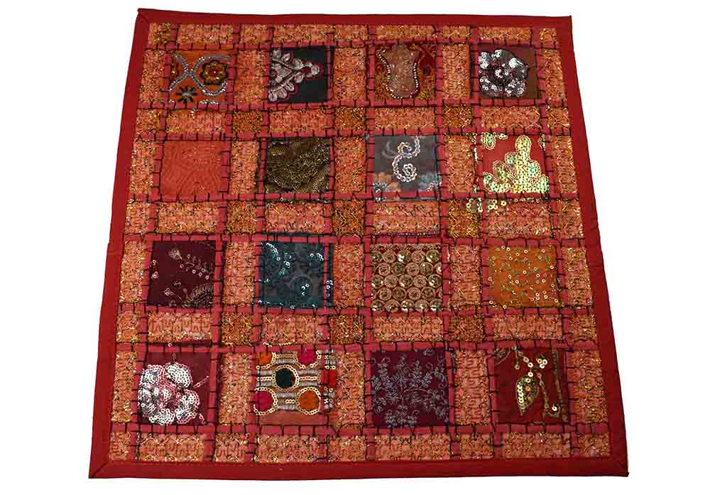 Cushion Cover Patchwork Sari Squares Red Sari 40X40cm
