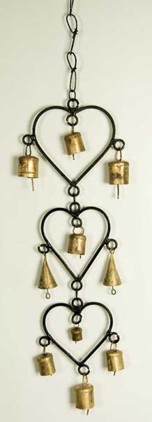Decoration Hanging Triple Heart With Bells 55cm (H)