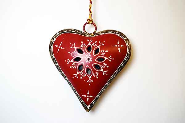 Decoration Iron Heart Red With Cut Floral Design W8 Inch