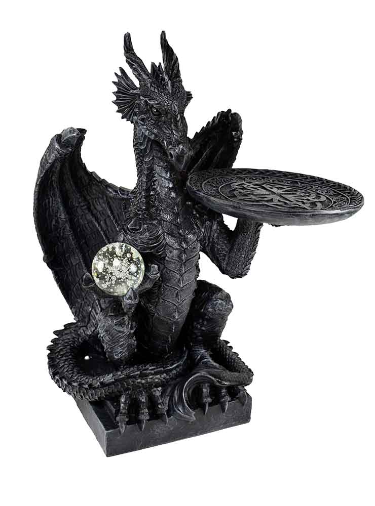 Dragon Black Sitting Holding Plate 34.5X34X49cm. Poly resin *COLLECTION ONLY*