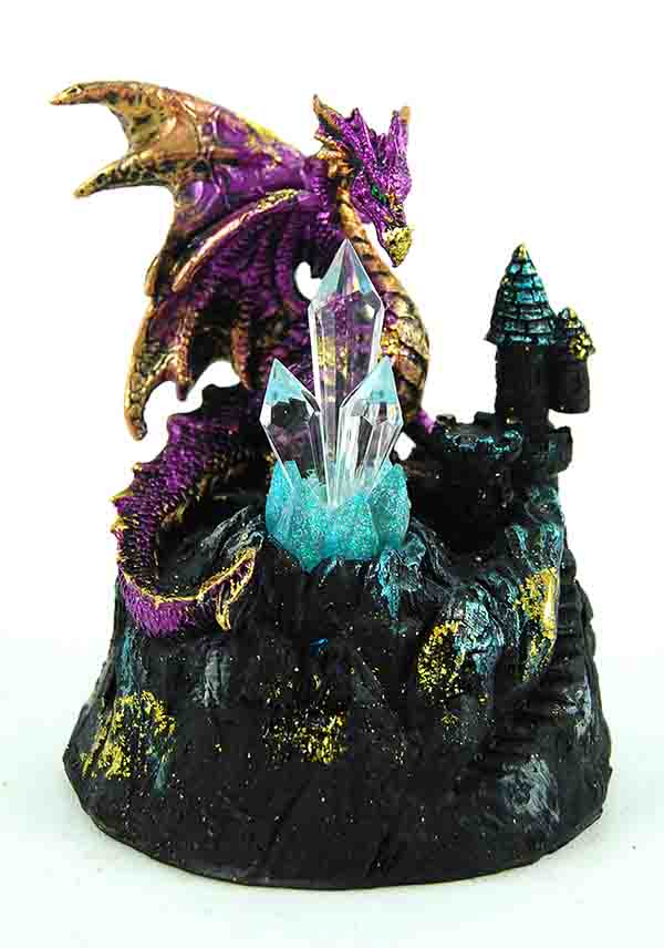 Dragon Purple On Castle Base With Clear point Stones 10.5X9X12.5cm Made From Poly Resin