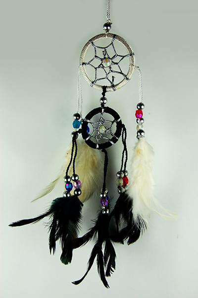 Dream Catcher Black And White With Beads And Feathers 4cm
