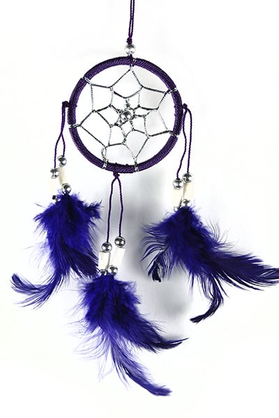 Dream Catcher Purple With Bone Beads And Feathers 6cm