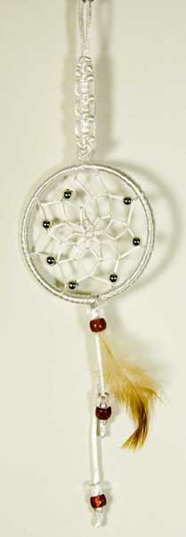 Dream Catcher Braided Natural With Feathers And Beads 3 Inch