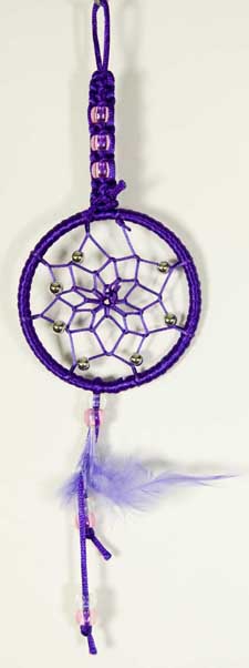 Dream Catcher Braided Purple With Feathers And Beads 3 Inch