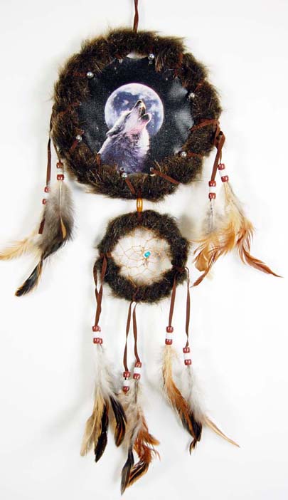 Dream Catcher Brown Wolf Howling At Night Time 16cm