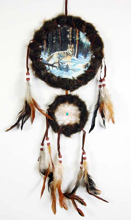 Dream Catcher Brown Wolf In Snowy Forest 16cm