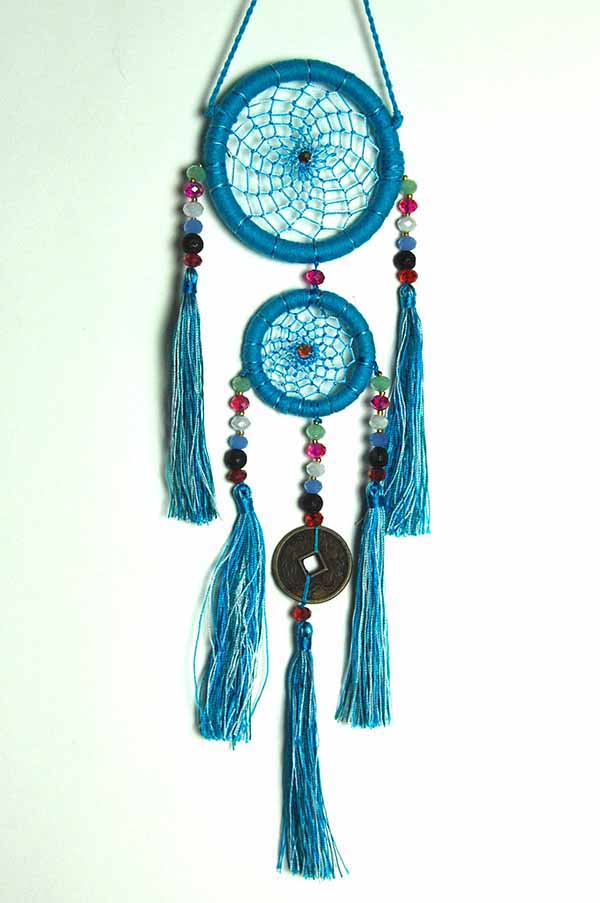 Dream Catcher Double Turquoise With Beads Tassels And Chinese Coin 6cm