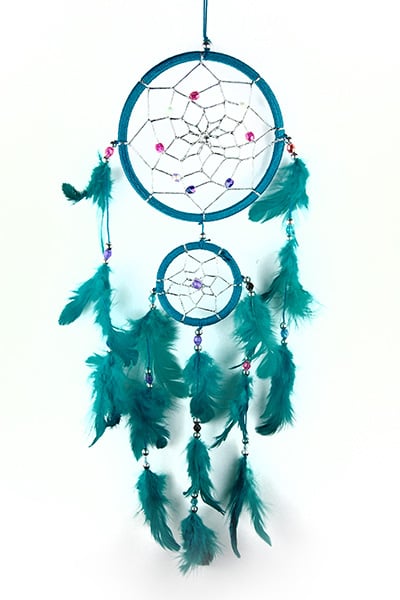 Dream Catcher Double Turquoise With 5 Lines Of Feathers 12cm