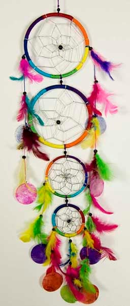Dream Catcher Four Circles Rainbow With Shells 17cm
