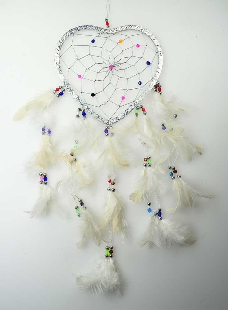 Dream Catcher Heart Silver Colour Foil With Feathers 18cm