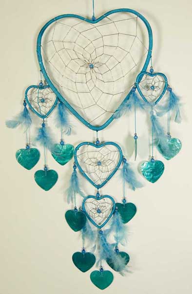 Dream Catcher Heart With Hanging Shells Turquoise 22cm