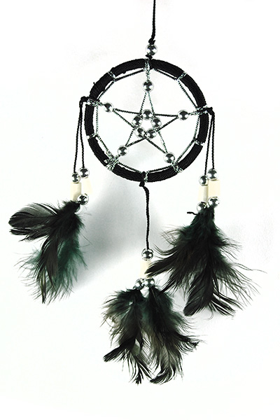Dream Catcher Pentagram Black With Bone Beads And Feathers 6cm