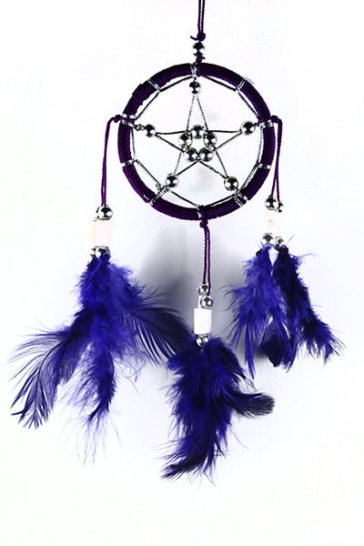 Dream Catcher Pentagram Purple With Bone Beads And Feathers 6cm