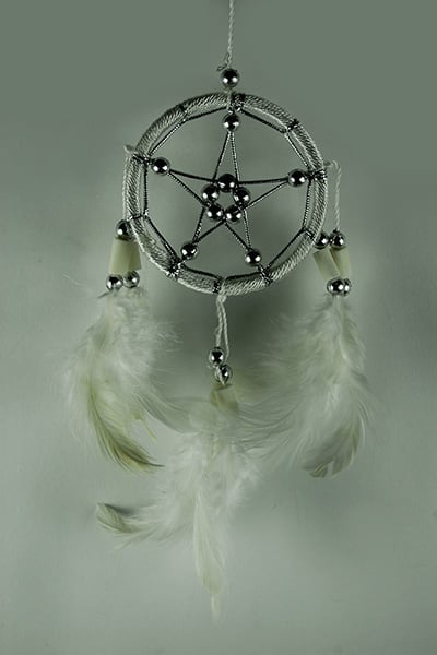 Dream Catcher Pentagram White With Bone Beads And Feathers 6cm