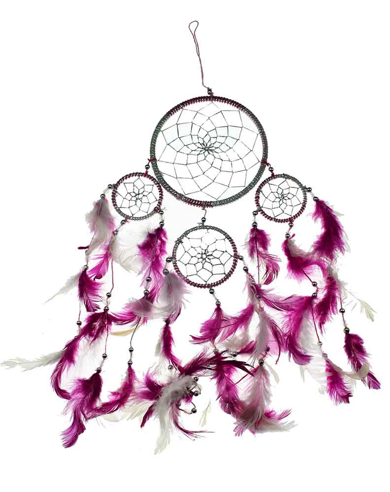 Dream Catcher Pink Two Tone. 4 Circles With Feathers And Beads 12cm