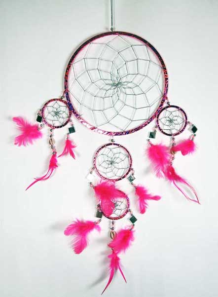 Dream Catcher Pink With Four Mini Dream Catchers And Feathers 22CM 5091