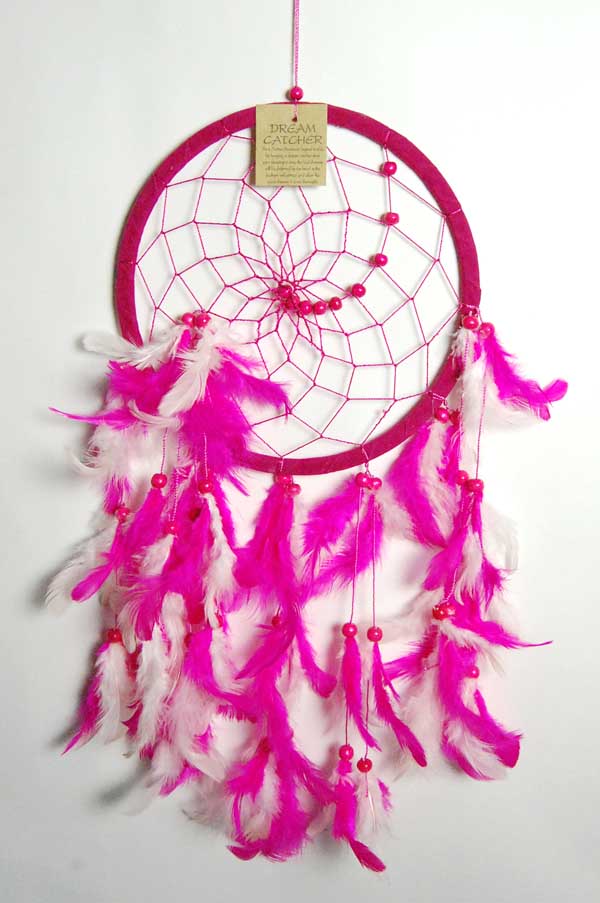 Dream Catcher Plain With Feathers Pink 21.5cm