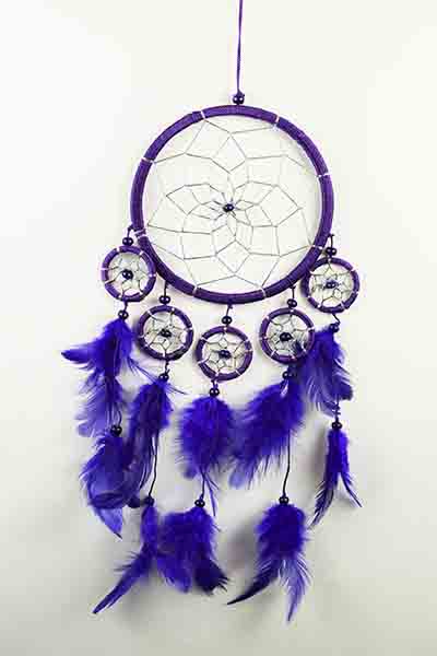 Dream Catcher Purple With 5 Mini Circles Beads And Feathers 12cm