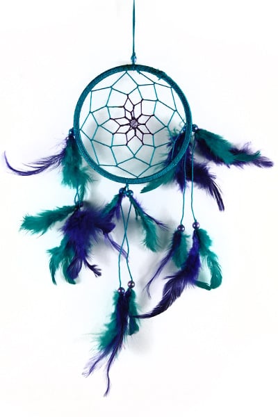 Dream Catcher Purple And Turquoise With Beads 11cm