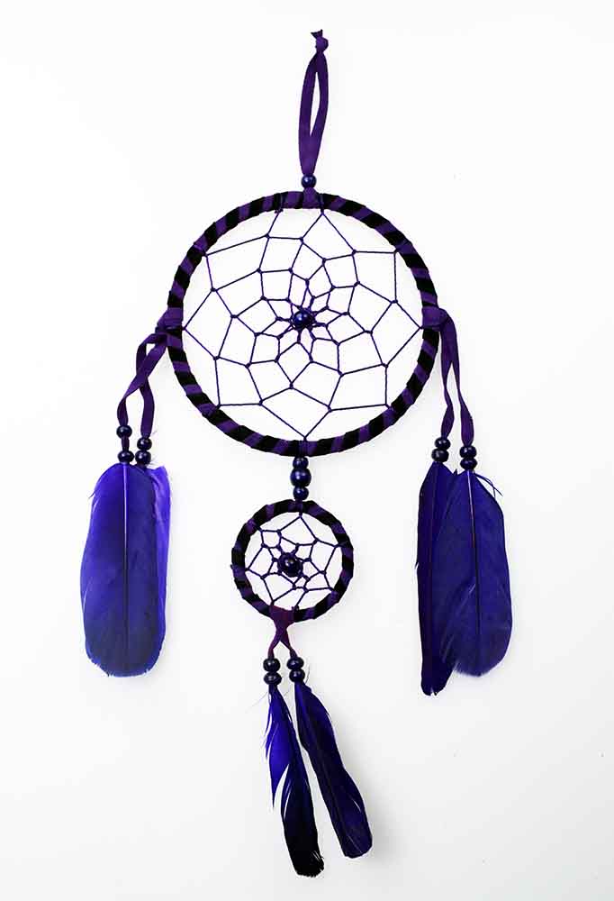 Dream Catcher 2 Circles Purple And Black Stripes With Purple Feathers 11.5cm And 5cm Circles