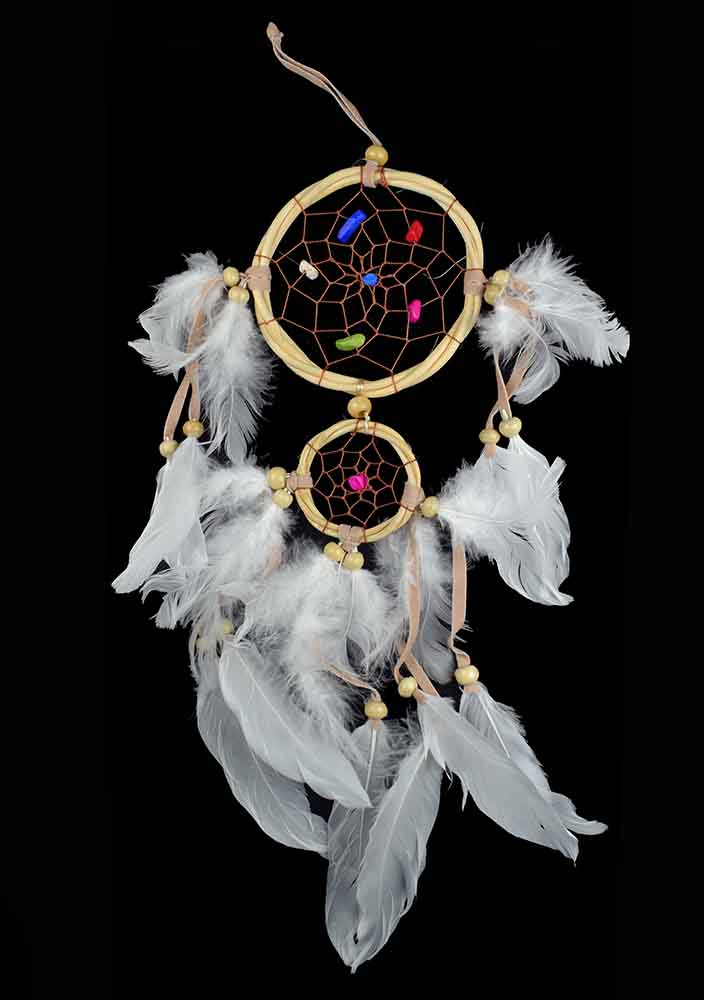 Dream Catcher Rattan Double Circle With Chip Stones And White Feathers