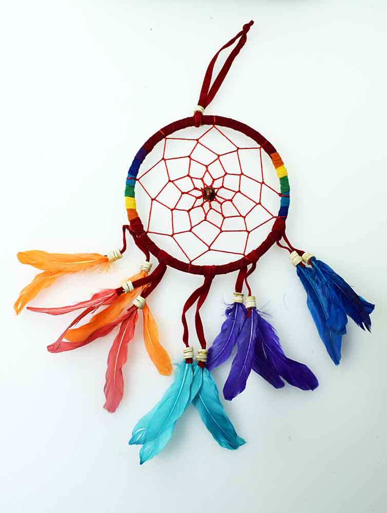 Dream Catcher Red And Rainbow Colours With Coloured Feathers 11.5cm