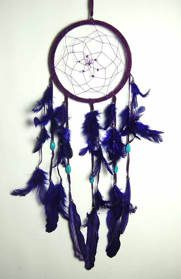 Dream Catcher Ruby Purple With Beads And Feathers 17cm