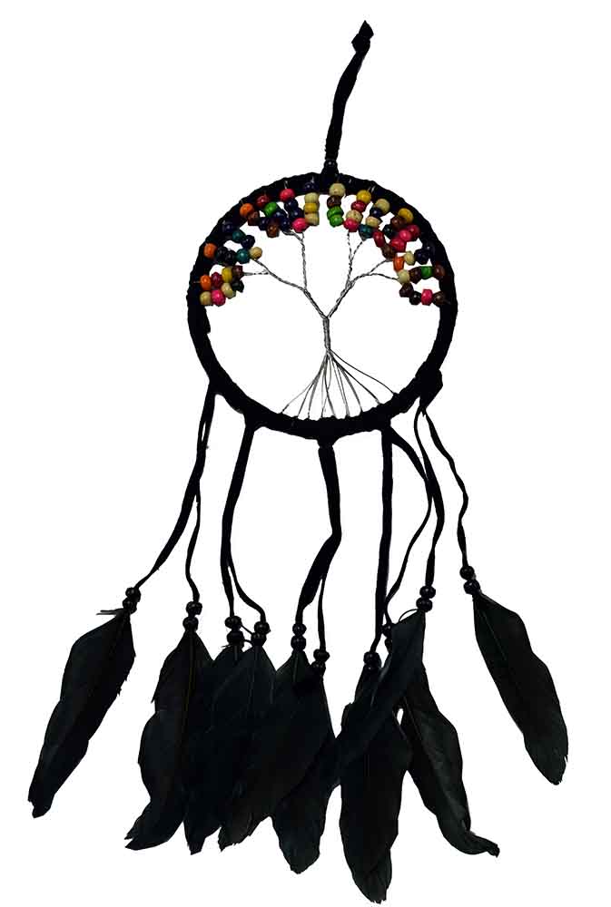 Dream Catcher Tree Black With Multi Coloured Beads And Feathers 12cm
