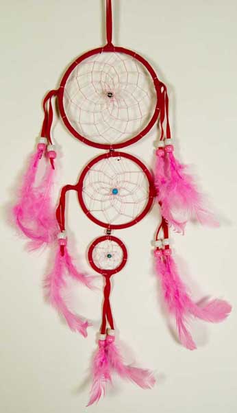 Dream Catcher Triple Circle Pink With Feathers And Beads 4 Inch