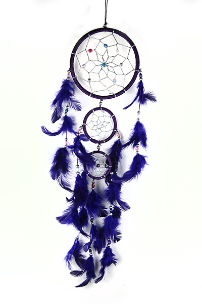Dream Catcher Triple Circle Purple With Beads And Feathers 12cm