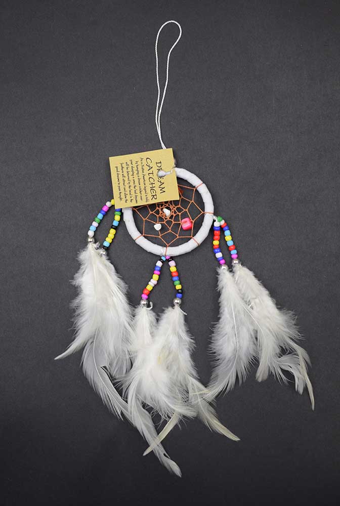 Dream catcher white small with feathers and beads