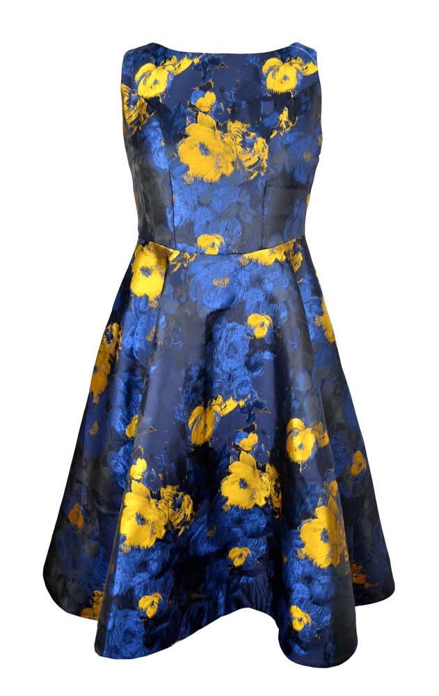 Dress Long Blue With Yellow Flowers Poly Silk Retro Rockabilly Style