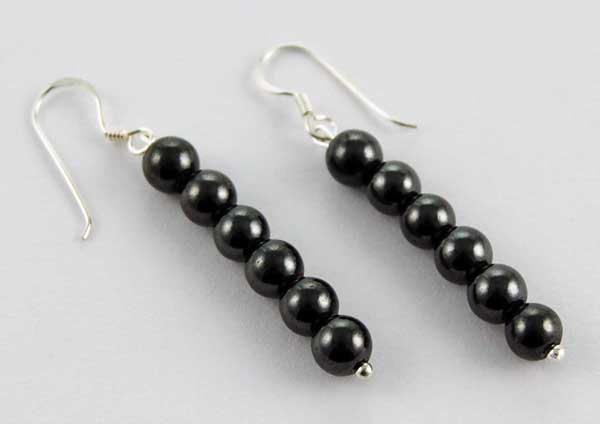 Earring Silver Hematite Stone Balls L5.5cm
