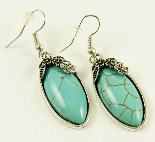 Earring Pewter And Turquoise Oval Shape Stone