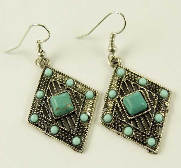 Earring Pewter Turquoise Diamond Shape