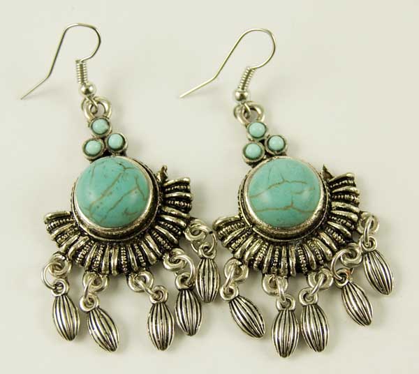 Earring Pewter Turquoise Half Moon Shape