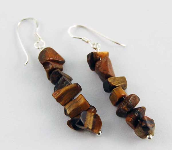 Earring Silver Chip Stones Tigers Eye L5.5cm
