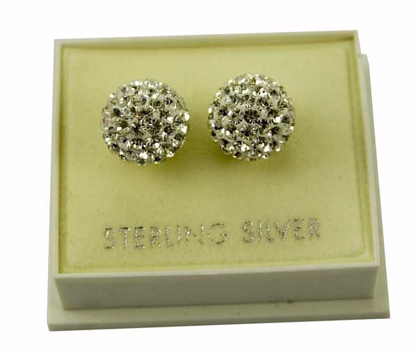 Earring Silver Stud Crystal Cluster 10mm Ball