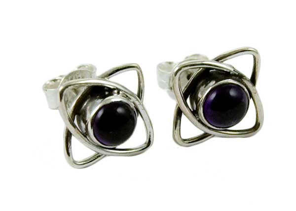 EARRING SILVER STUD AMETHYST FLOWER STYLE