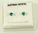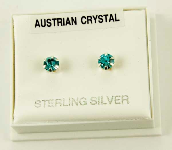 Silver Earring Stud Aqua Claw Set Austrian Crystal Stone 4mm