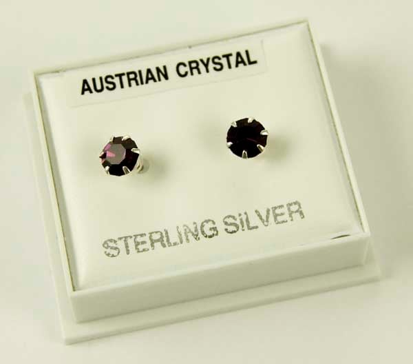 Silver Earring Stud Dark Purple Claw Set Austrian Crystal Stone 5mm