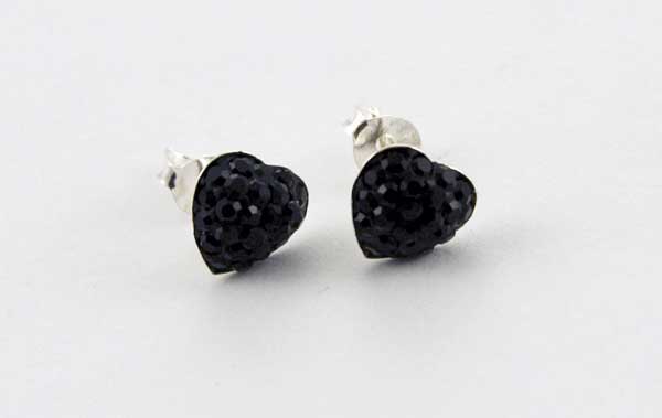 Earring Silver Stud Heart Jet 8mm