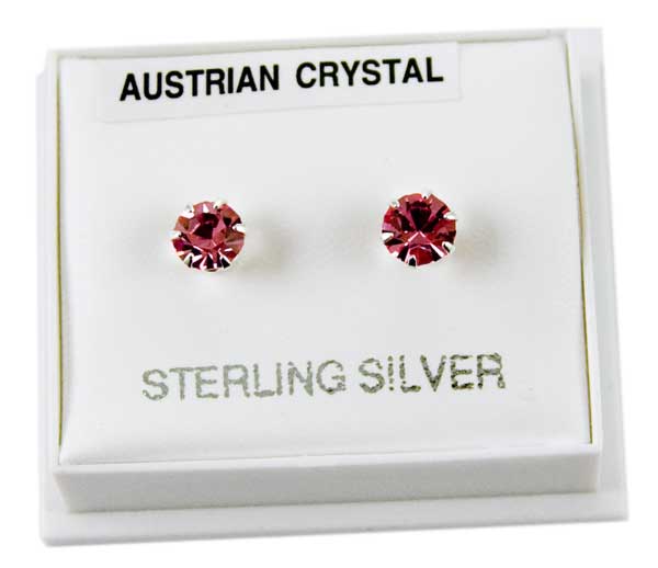 Silver Earring Stud Pink Claw Set Austrian Crystal Stone 5mm