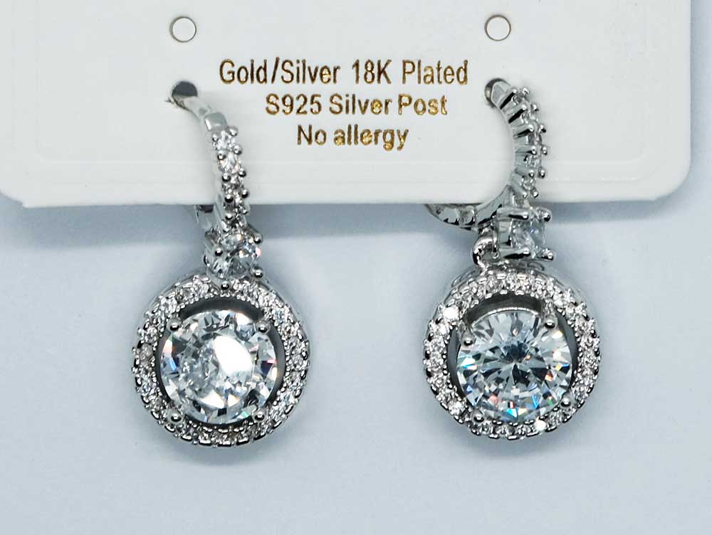 Earring Stainless Steel Hallmarked Circle Lrg Stone Silver 925 Plated