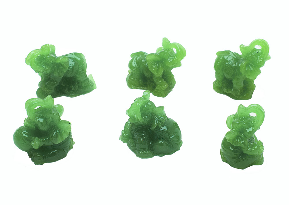 Elephant Set of 6 Small Jade Colour Resin 5cm